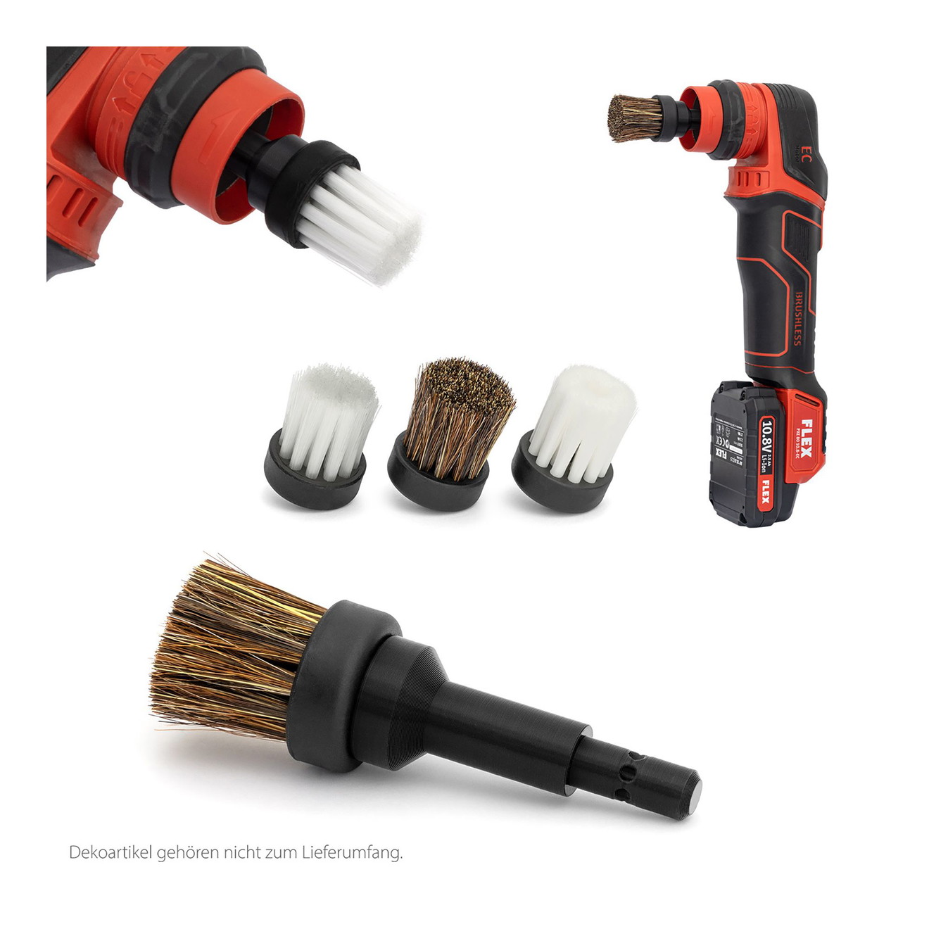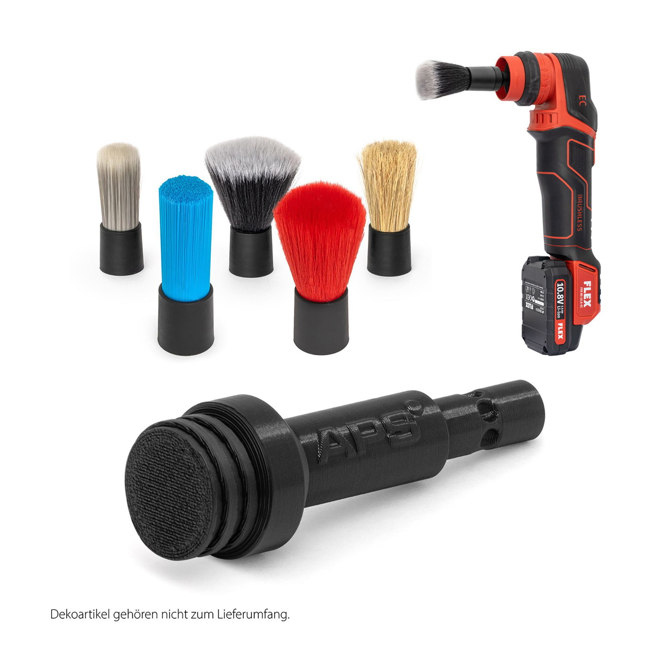 APS Detailing Fantastic 3 Bürsten sind schraubbare Bürstengriffe und Bürstenadapter für die Fantastic 3 Pinselköpfe, die im Set und einzeln erhätlich sind. Die Bürstenköpfe können somit wahlweise mit einem Handgriff, an einem Akkubohrer oder an der Flex PXE 80 Minipoliermaschine betrieben werden. Der Vorteil liegt auf der Hand: Reinigungsarbeiten lassen sich maschinell ergänzen und somit beschleunigen. Durch die Möglichkeit, unterschiedliche Bürstenköpfe einzusetzen, können quasi alle denkbaren Materialien gereinigt werden.