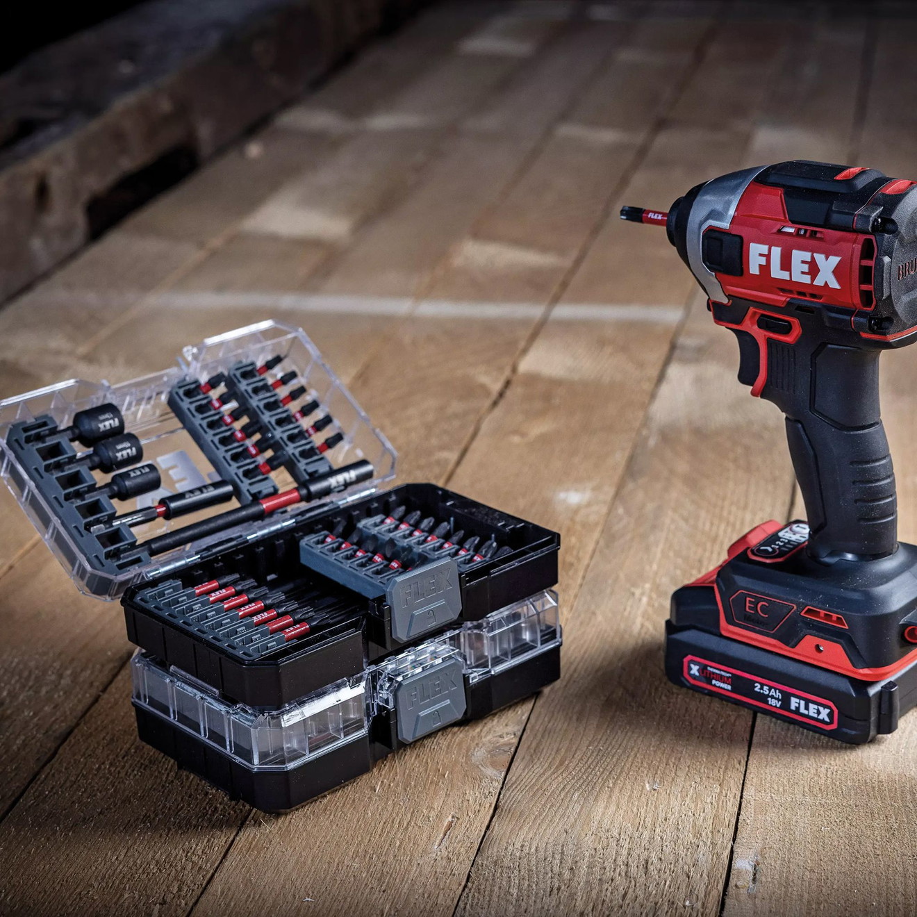 Practical bit set in a durable, lockable box, stackable due to side locking. The bits are neatly stored and quickly accessible. High-quality 41-piece set including: 1" (25 mm): PH1, 2x PH2, PH3, PZ1, PZ2, PZ3, PZ4, SL3, SL4, SL5, SL6, T10, T15, 2x T20, 3x T25/T27/T30, T40. 2" (50 mm): T15, 2x T20/T25/T30, T40. Magnetic holder 1-7/8": 8, 10, 13 mm. Universal magnetic mounting 6" and standard magnet holder.