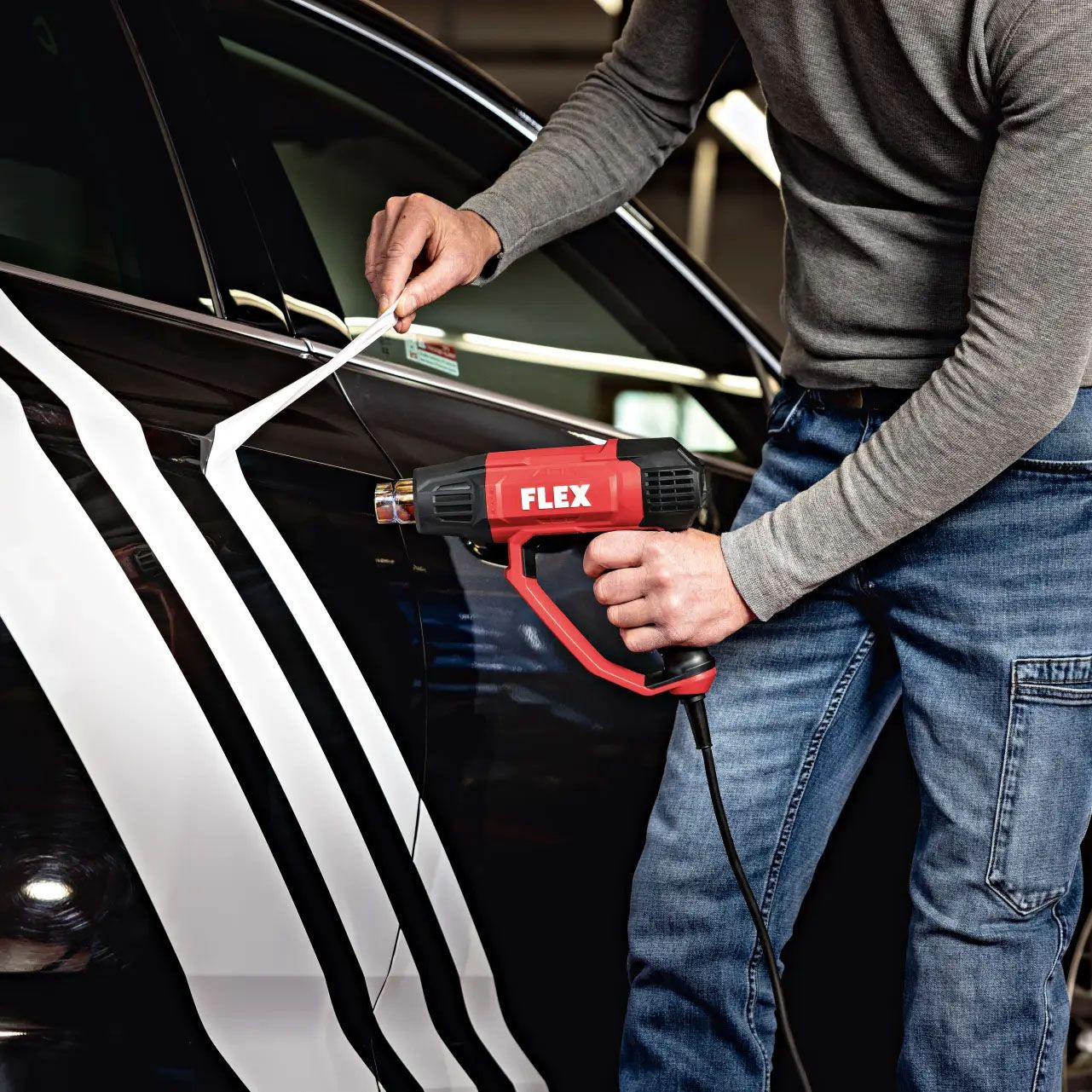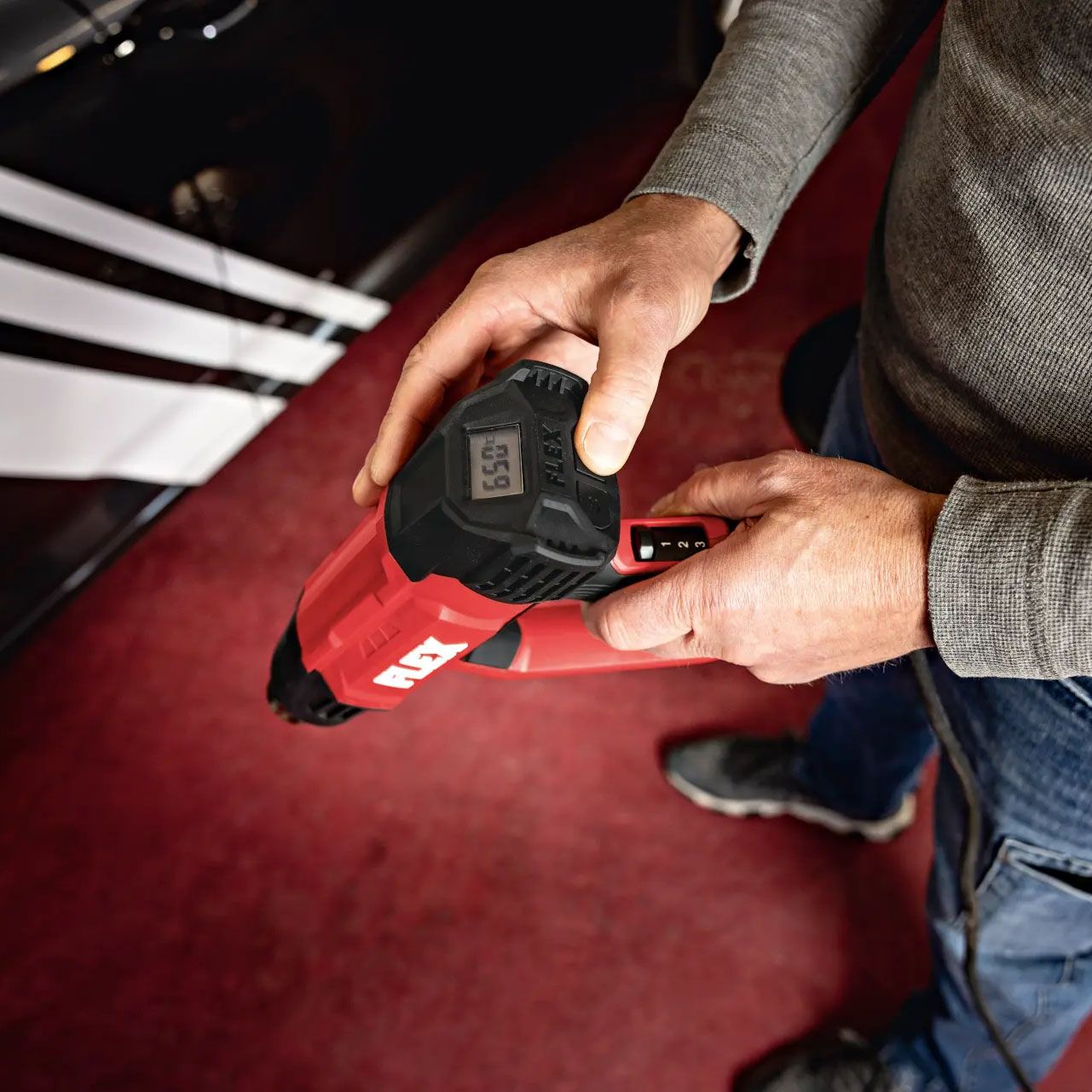 Powerful hot air gun with temperature control in 10° increments from 50°-650°C and 2 airflow settings. Rapid heating in seconds due to efficient heating elements. Very comfortable with an LCD display for digital temperature and airflow setting. Perfectly suitable for a variety of applications: hardening and drying, removing paints and coatings, stickers, molding, and shrinking plastic parts and heat shrink tubing, soldering electrical connections and copper pipe connections. Also usable for removing paint and adhesive residues, car wrapping and automotive parts, spot repair of truck tarpaulins, and loosening rusted and seized connections. Compact and ergonomic design. With a protective handle for optimal user safety. Flat, reflector, and reduction nozzles for various applications included in delivery.