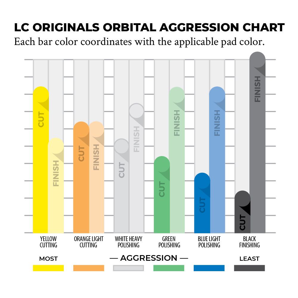 - Orange: Medium cut, removes medium paint defects with good finishing.