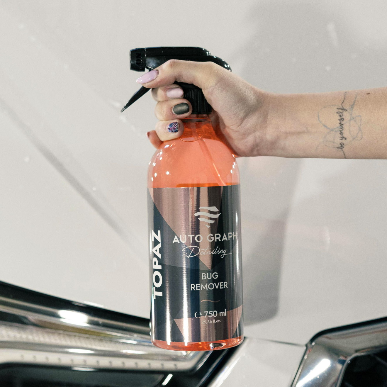AUTO GRAPH TOPAZ Décapant Insectes est un produit exceptionnellement conçu pour protéger les peintures, les verres, les plastiques et les pièces chromées. Les insectes restés sur la voiture peuvent endommager la structure de la peinture, ce qui peut avoir des conséquences à long terme sur l'apparence et la qualité du véhicule. Il est donc essentiel de supprimer régulièrement ces résidus. La formule innovante de TOPAZ décompose facilement les protéines dans les carapaces d'insectes et les élimine rapidement et efficacement de la surface. Ce produit prêt à l'emploi assure non seulement un nettoyage en profondeur, mais aide également à maintenir le véhicule en parfait état.