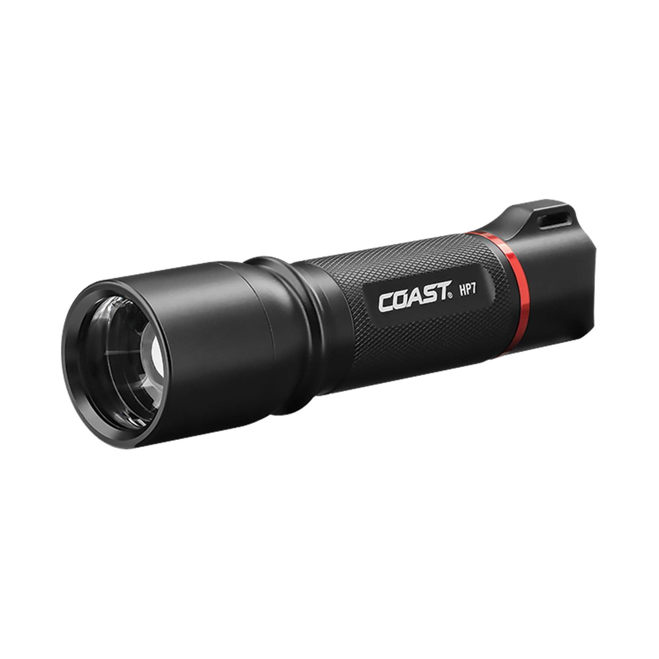 La Coast HP7 a été développée pour les services de sécurité et de secours, la chasse et les applications militaires, et est utilisée dans le monde entier à ces fins. Elle a une portée lumineuse allant jusqu'à 200 mètres. La lampe est livrée avec quatre piles AAA alcalines, un étui en nylon et une dragonne. Le « Quick-Cycle-Switch » permet, grâce à plusieurs pressions courtes, de choisir entre une haute luminosité de 650 Lumens, un puissant mode stroboscope ou un éclairage réduit de 90 Lumens. Avec le « Slide-Focus », il est possible de passer rapidement d'un large faisceau lumineux au « X-Range-Spot » d'une seule main. Le boîtier léger en aluminium est conçu pour la durabilité et la robustesse, et la lampe est dotée d'un protège-roulement.