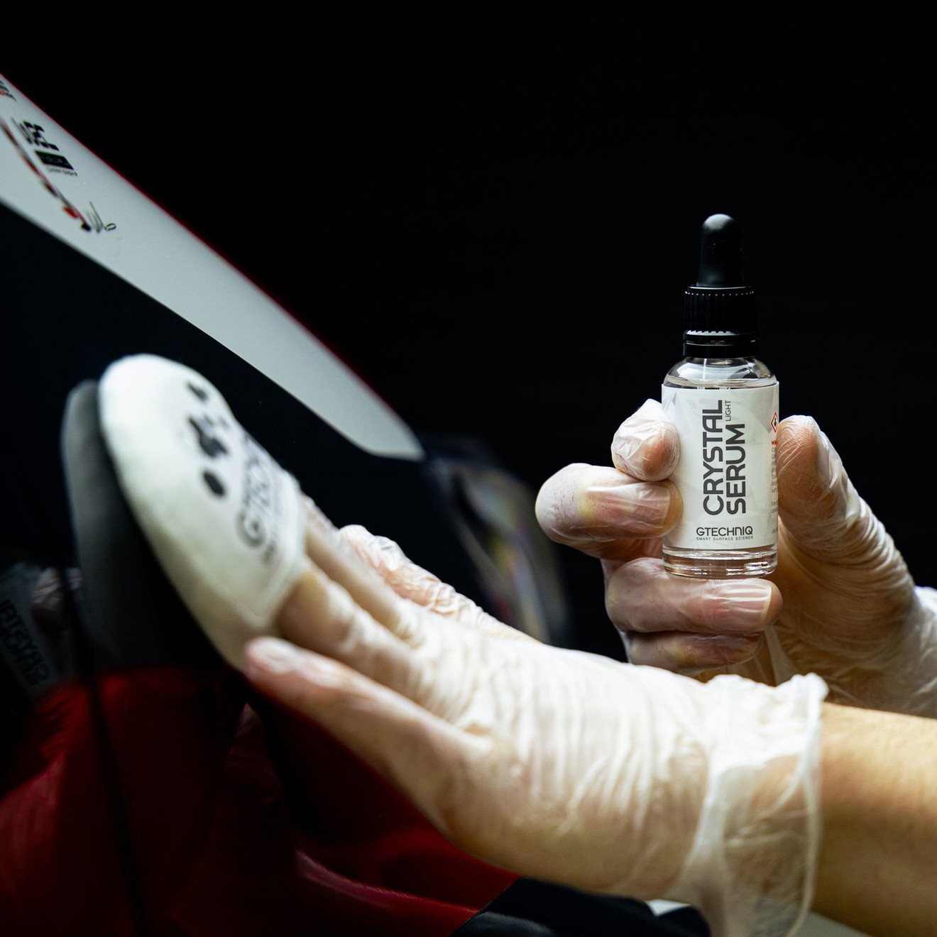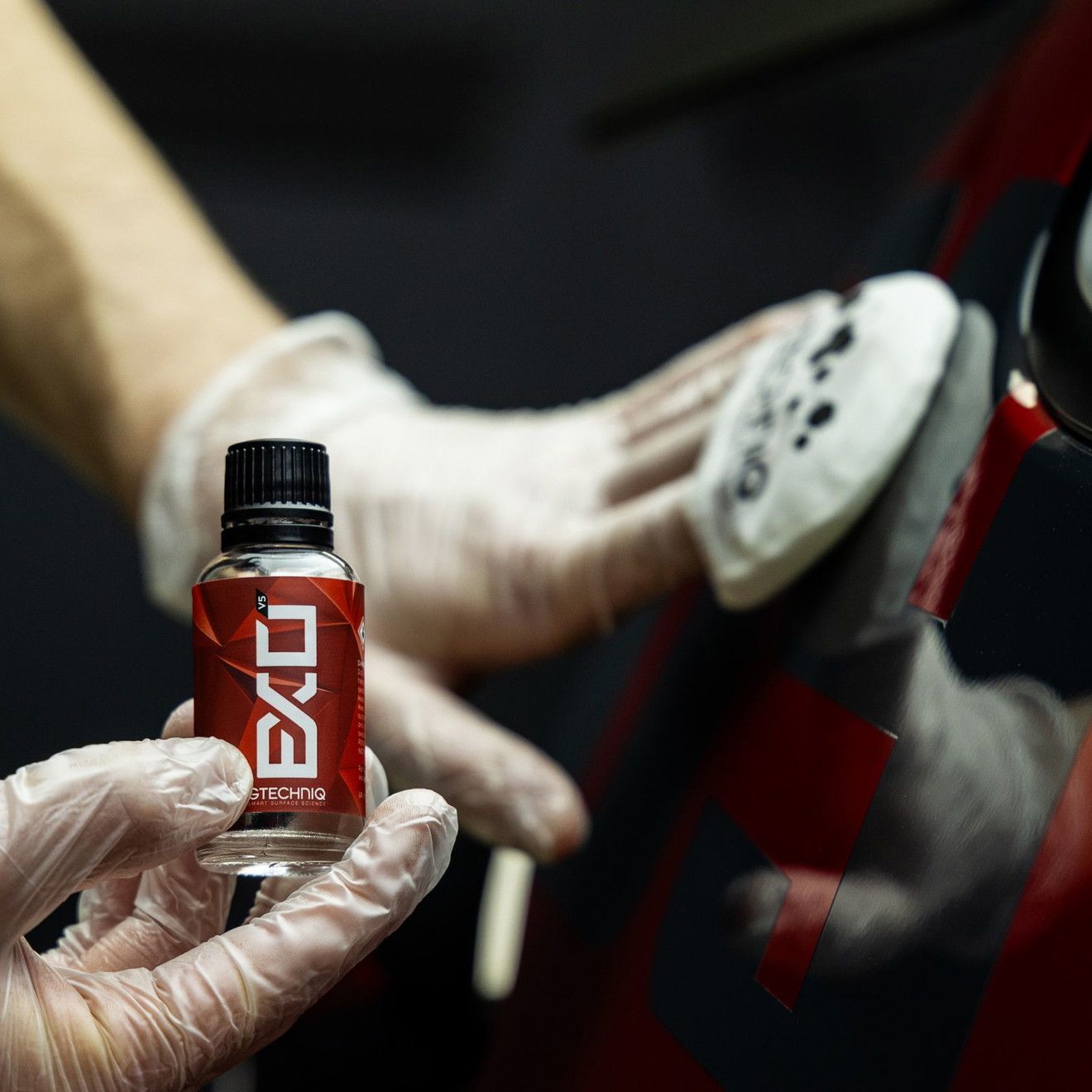 L'application du set professionnel de protection céramique Gtechniq est simple et se fait en quelques étapes. Après un nettoyage et un polissage approfondis du véhicule, CSL est d'abord appliqué comme base. Après un court temps de durcissement, EXOv5 est appliqué pour compléter la protection et l'apparence.