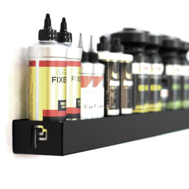 L'étagère de montage mural Poka Premium est un meuble de rangement polyvalent pour les polishes, flacons, revêtements, tampons de polissage et d'autres matériaux pour detailing et entretien automobile. La profondeur de l'étagère est de 86 mm, permettant de ranger également des contenants plus grands. L'étagère est fabriquée en acier, revêtue en poudre et offre une esthétique remarquable.