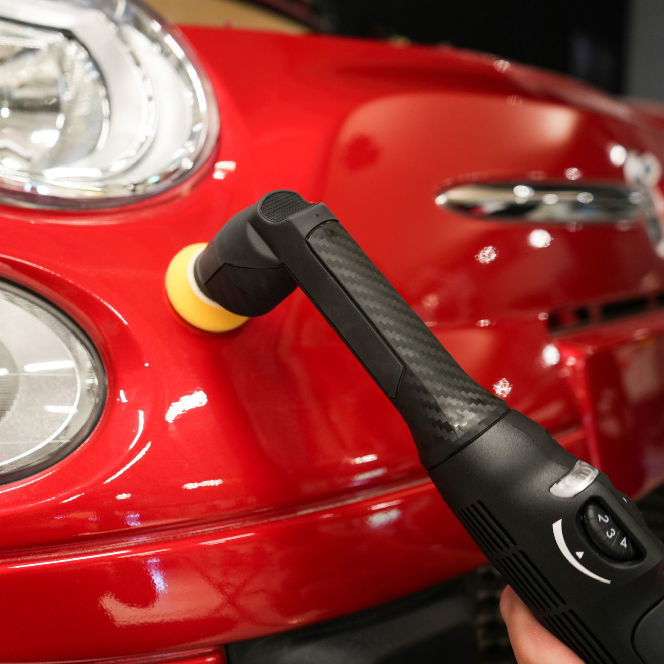 La machine est immédiatement prête à l’emploi pour des travaux de correction précis et des passages de finition de haute qualité. Pour la correction des défauts, il est recommandé de commencer avec un polish moyen et un pad adapté, puis de passer à un polish fin ou à une finition brillante pour un résultat parfait. Les bords délicats doivent être masqués au préalable et travaillés avec une pression modérée et à faible vitesse.