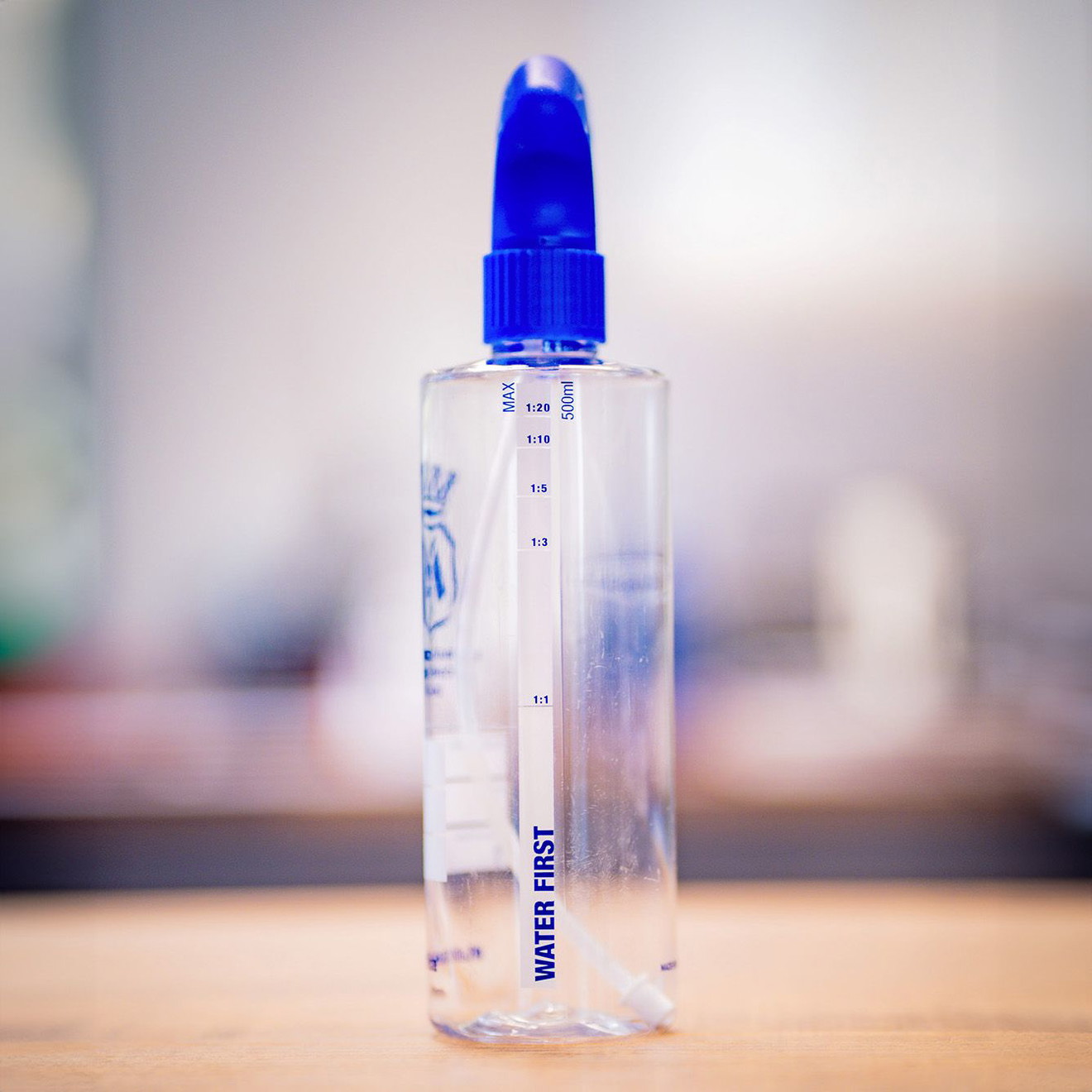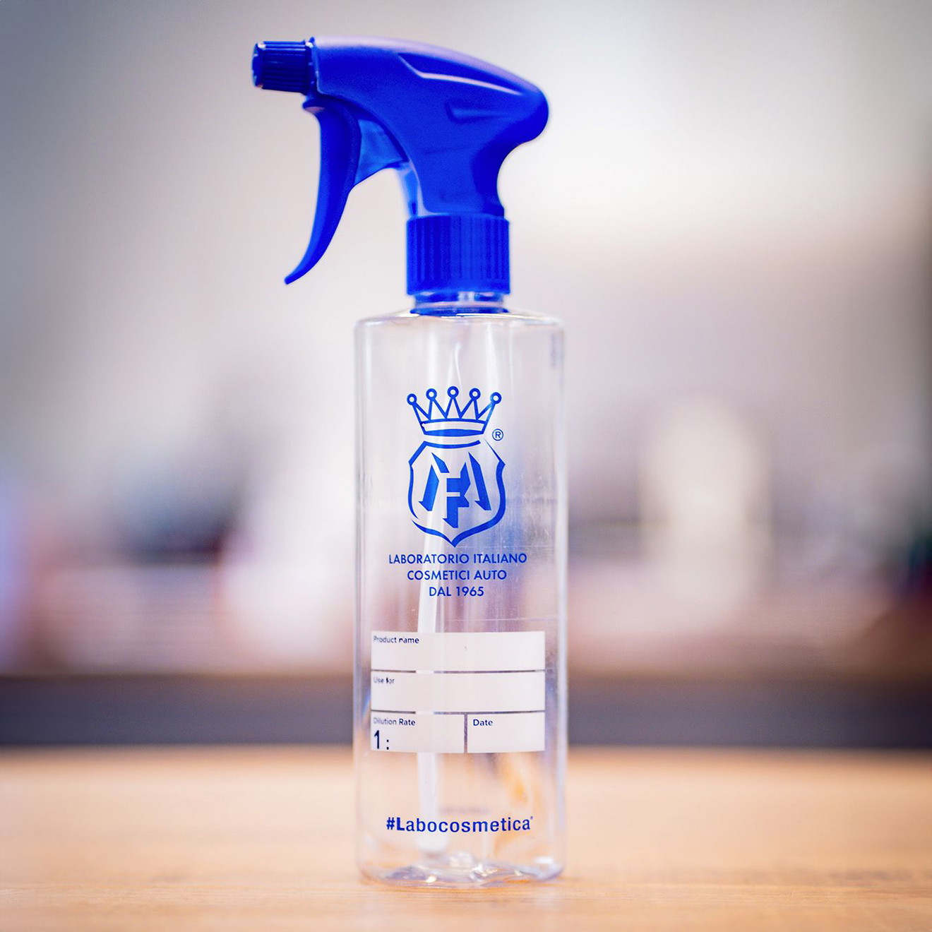 Original Labocosmetica Leerflasche inkl. hochwertigem Sprühkopf. Die Flasche ist beschriftbare durch eine spezielle Beschichtung und enthält eine Skala für Mischung von 1:1 bis 1:20. Die Leerflasche eignet sich hervorragend für das Ansetzen von Mischungen für die Innenreinigung.