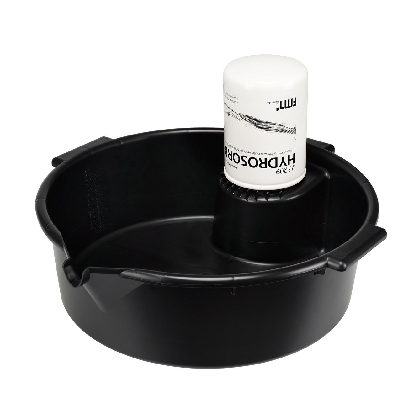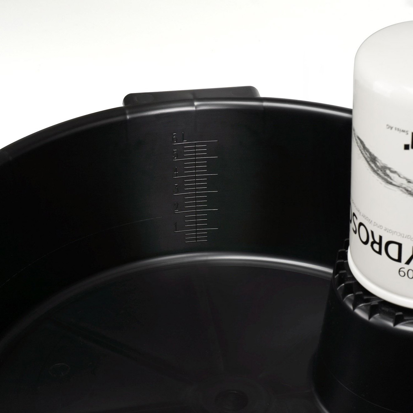 Dank des robusten Polyethylens ist die Wanne extrem widerstandsfähig und auf den rauen Werkstattalltag ausgelegt. Besonders clever: Der eingearbeitete Höcker dient als Abstellfläche für verschmutzte Teile oder Ölfilter und verhindert durch die integrierte Filtersicherung ein Verrutschen.