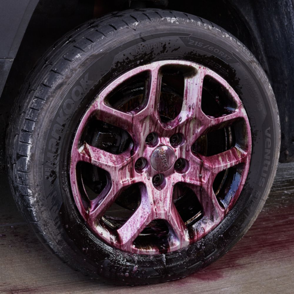 Für noch besseren Reinigungseffekt: Nach dem Auftragen mit einem Felgenpinsel aus Naturhaar leicht nacharbeiten – besonders bei komplexen Felgendesigns oder schwer erreichbaren Stellen. Danach gründlich spülen. Je weniger mechanische Belastung, desto besser – der Red Max macht den Job fast allein.