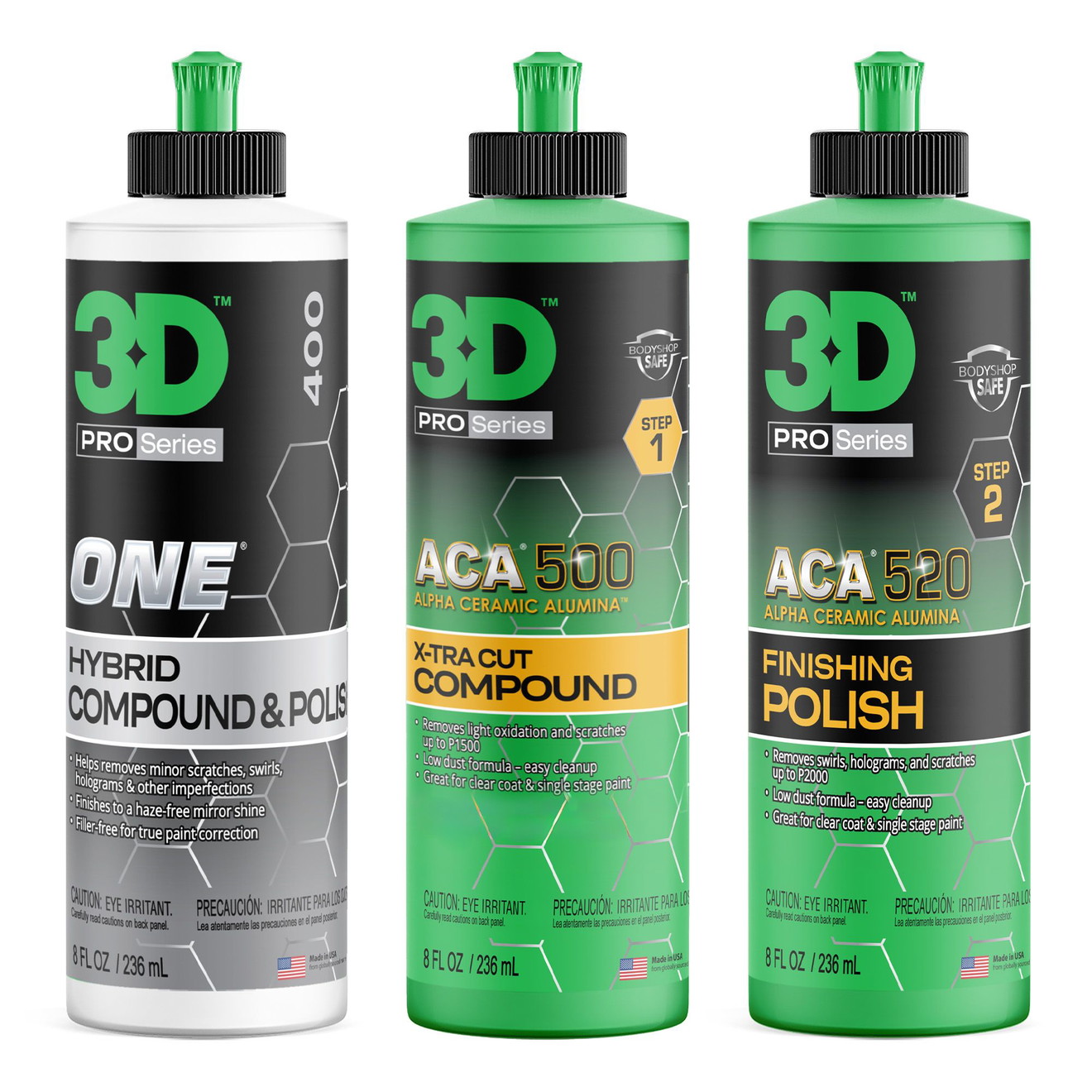 - 3D ONE Hybrid 400 Politur (236ml): Uniwersalna polerka do średnich defektów do wyspecjalizowanych błysków – z właściwościami cięcia i wykończenia. Idealna do szybkich procesów polerowania z doskonałym rezultatem, także na lakierach ceramicznych.